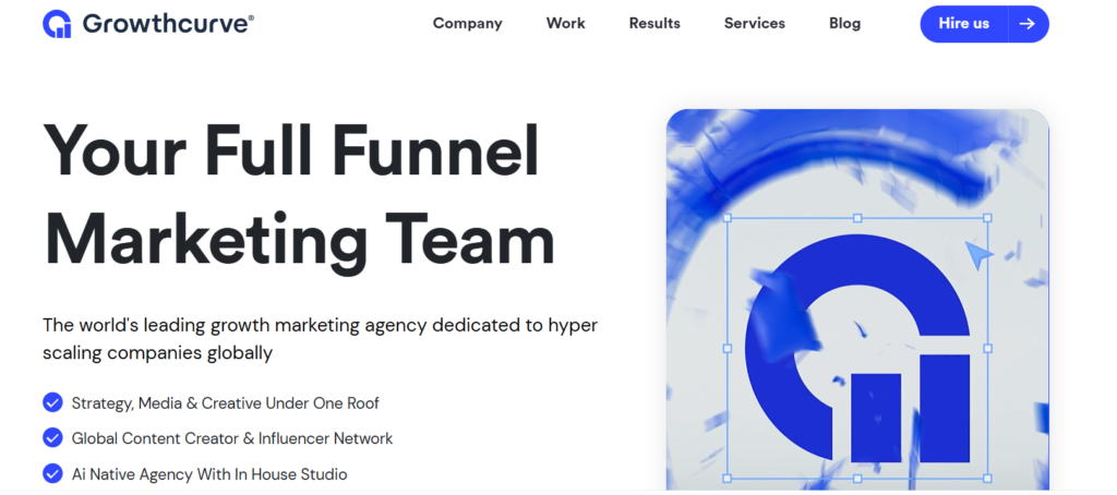 4 Growthcurve Data-driven video marketing for scaling ecommerce brands Paid social video, creative production, growth marketing AI-driven campaigns with performance focus
